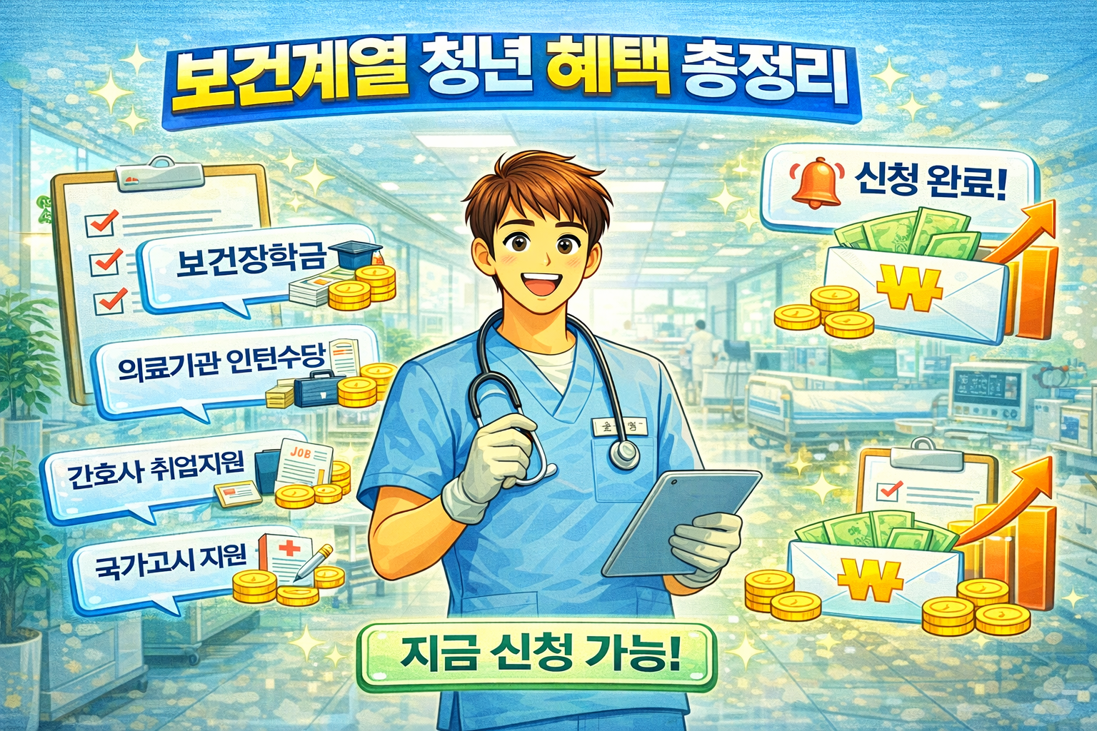 간호·보건계열 청년이라면 놓치면 안 되는 지원금이 무려 7가지나 있다는 사실, 알고 계셨나요? 신청만 해도 최대 300만원까지 받을 수 있는데 70% 이상이 몰라서 놓치고 있습니다. 지금 바로 5분 투자로 내가 받을 수 있는 혜택을 확인해보세요.