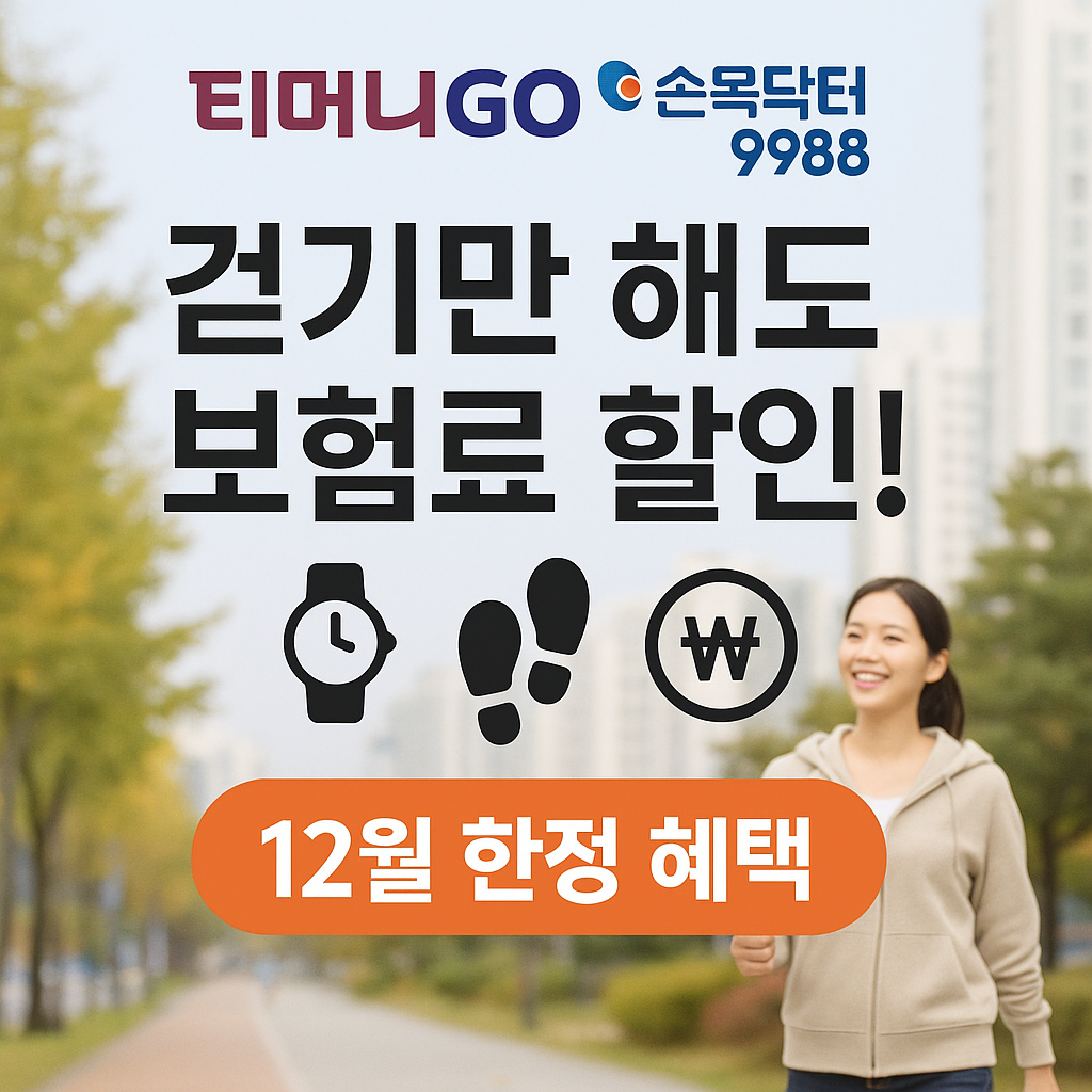 매일 걷기만 해도 보험료 할인받고 마일리지까지 적립된다는 사실 알고 계셨나요? 손목닥터9988과 티머니GO가 만나 걸음 수에 따라 보험료를 할인해주고 교통카드 마일리지까지 주는 혜택을 제공하고 있습니다. 하루 1만보만 걸어도 연간 최대 10만원까지 절약할 수 있는 놓치면 아까운 기회입니다.