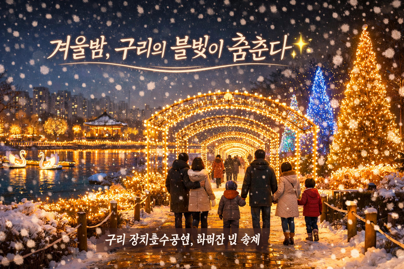 겨울밤을 황홀하게 물들일 구리 최대 규모 빛 축제가 드디어 시작됩니다! 장자호수공원에서 펼쳐지는 환상적인 빛의 향연을 놓치면 내년까지 기다려야 하는데, 아직도 모르는 분들이 많습니다. 지금 바로 방문 정보를 확인하고 올겨울 가장 아름다운 추억을 만들어보세요.