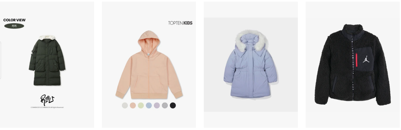 - 스포츠 브랜드: 노스페이스 키즈, 뉴발란스 키즈, 내셔널지오그래픽 키즈, 디스커버리 키즈 등 따뜻함은 기본, 활동성까지 고려한 디자인으로 아이들이 겨울에도 불편함 없이 뛰어놀 수 있습니다.