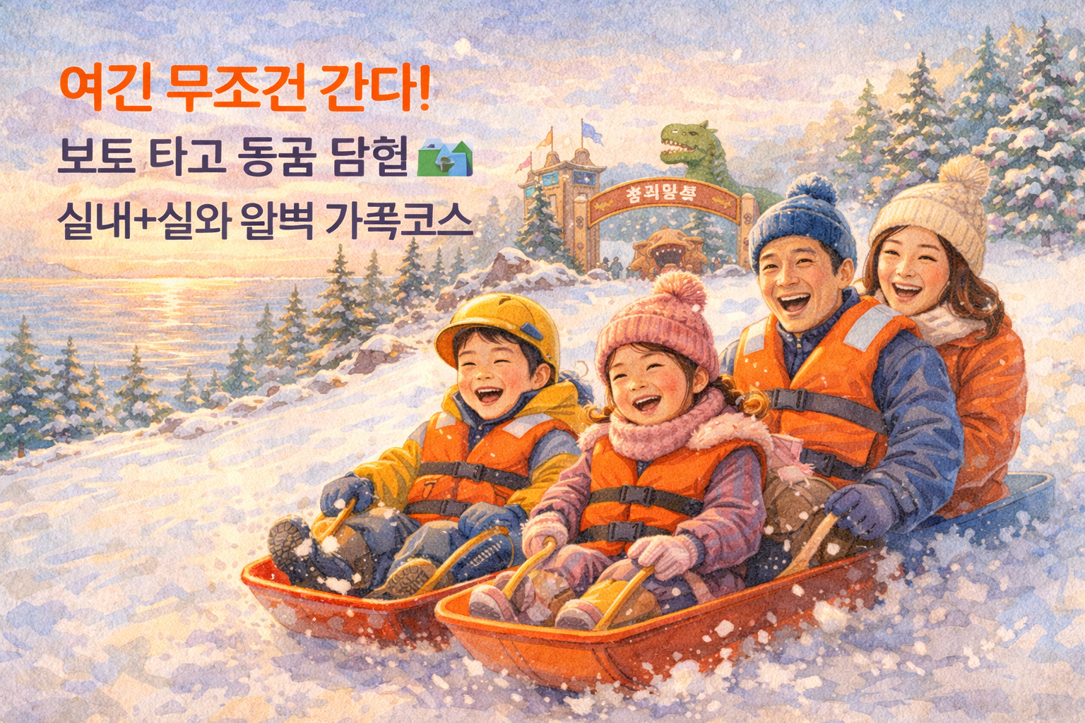 동굴 내부 온도가 낮아 가벼운 외투는 필수이며, 눈썰매장 이용 시 미끄럼 방지를 위한 운동화 착용이 중요합니다.