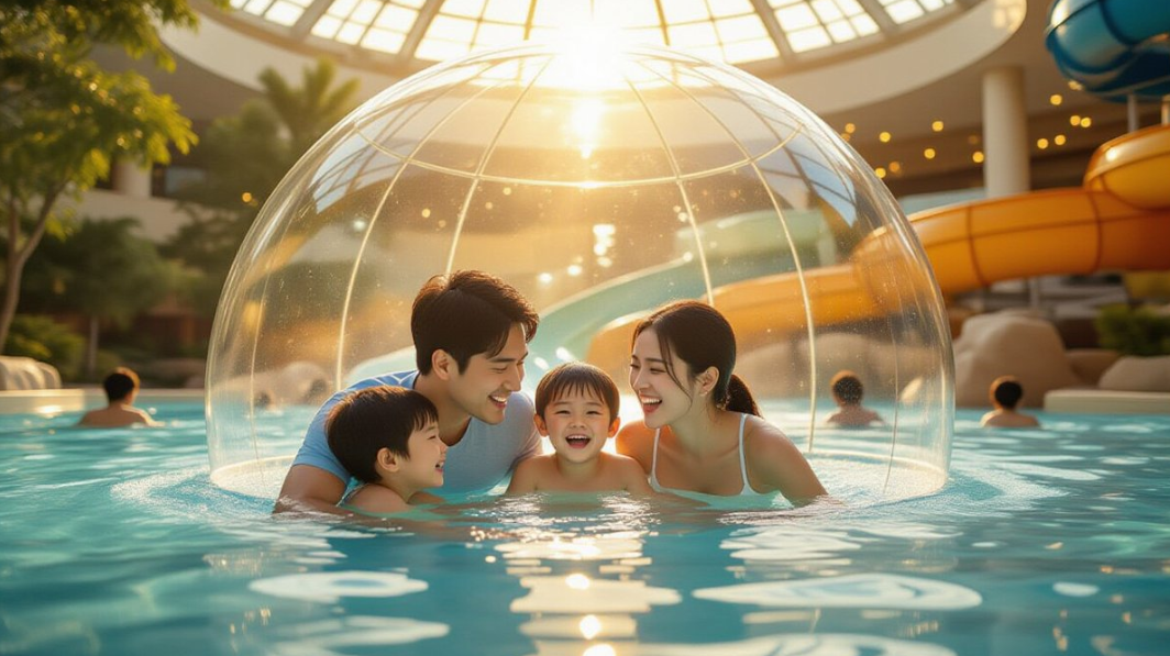 인스파이어 스플래시베이는 인천 인스파이어 리조트 안에 위치한 특별한 실내 워터파크예요. 넓은 유리 돔 아래 사계절 내내 따뜻하게 물놀이를 즐길 수 있죠.