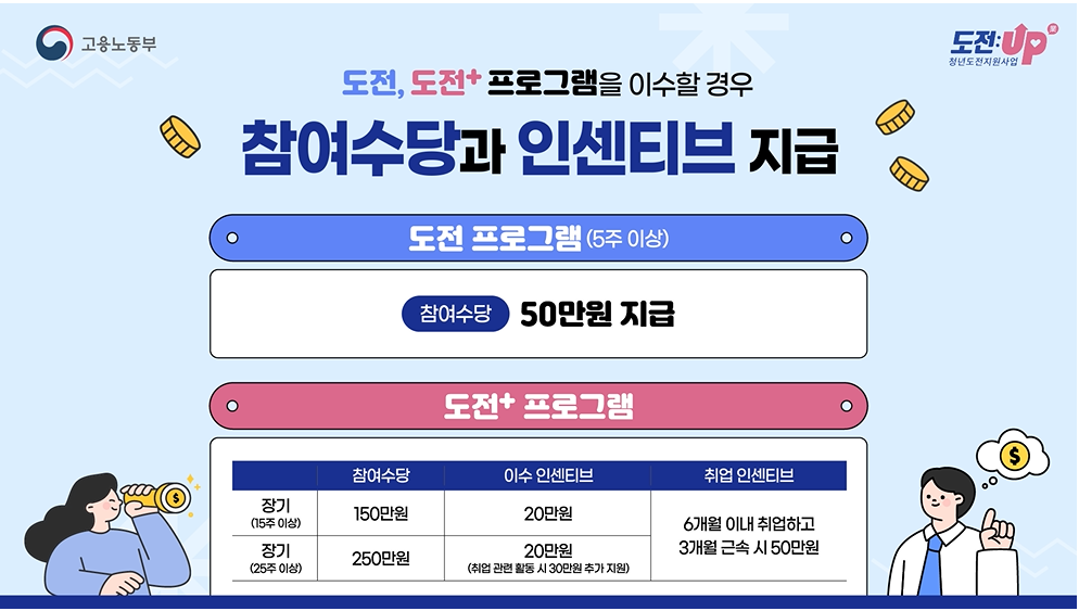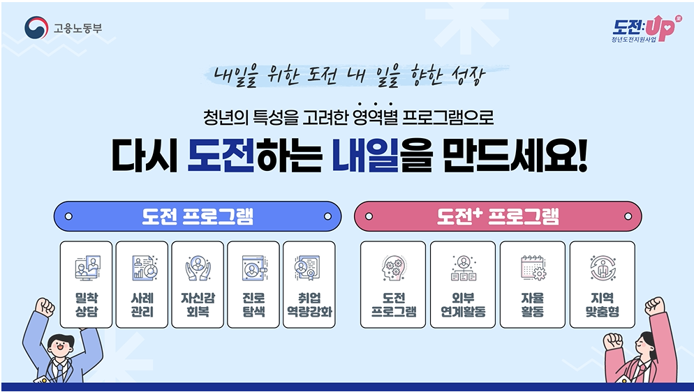 청년도전지원사업은 단순한 금전 지원을 넘어, 청년들의 자신감 회복, 진로 탐색, 취업 역량 강화를 위한 맞춤형 프로그램을 제공합니다.