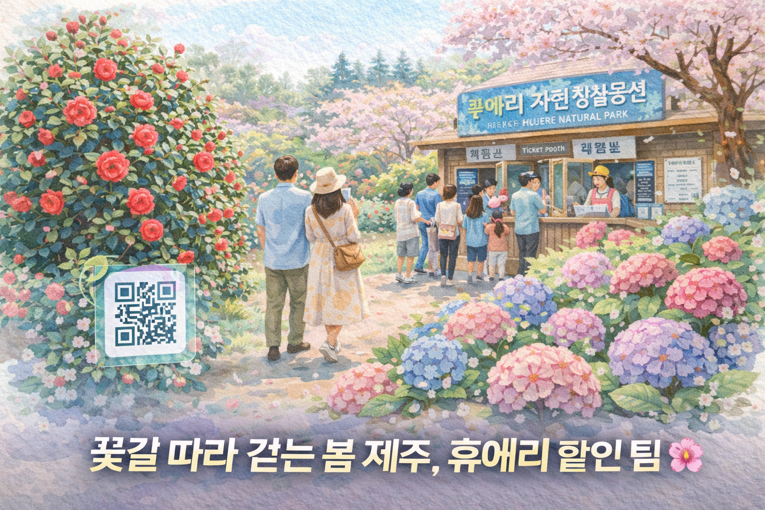 휴애리 카카오톡 채널을 친구추가하면 즉시 사용 가능한 10% 할인쿠폰이 발급됩니다. 채널을 통해 실시간 혼잡도 확인도 가능하며, 비수기 특가 이벤트 알림을 가장 먼저 받아볼 수 있습니다.