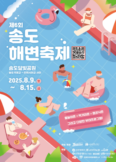 2025년 8월, 송도해변은 뜨거운 열기로 가득 찰 예정입니다! 시원한 물놀이부터 눈과 귀가 즐거운 공연, 그리고 맛있는 먹거리까지 모든 것이 준비되어 있습니다. 송도해변축제는 크게 물놀이 존, 이벤트 존, 휴식 존, 공연 프로그램, 그리고 다양한 체험 부스로 구성되어 있습니다.