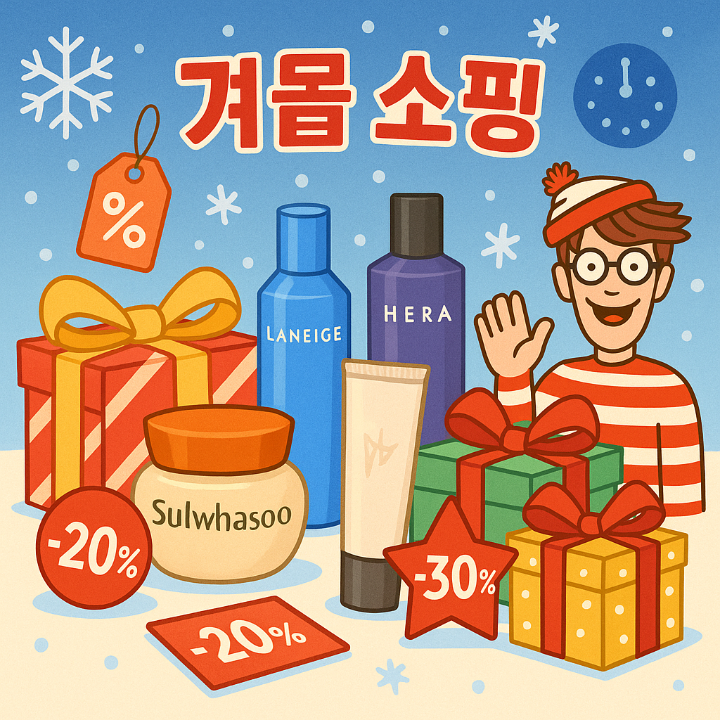 설화수 진설 라인 30% 할인, 헤라 쿠션 2+1 이벤트, 라네즈 수면팩 50% 할인 등 브랜드별 대표 상품이 큰 폭으로 할인됩니다.