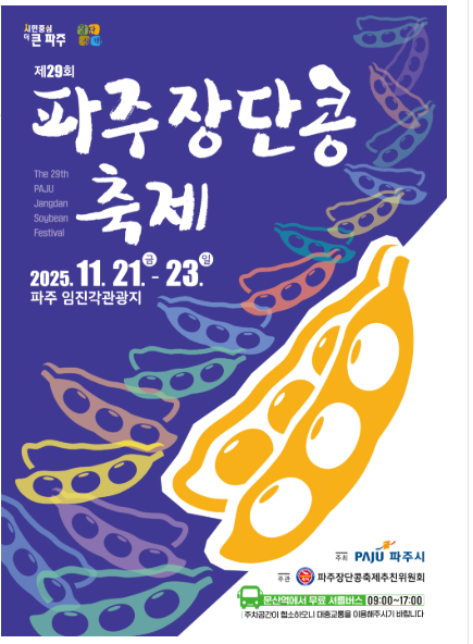 2025 파주 장단콩 축제는 10월 24일부터 26일까지 단 3일간 열립니다.