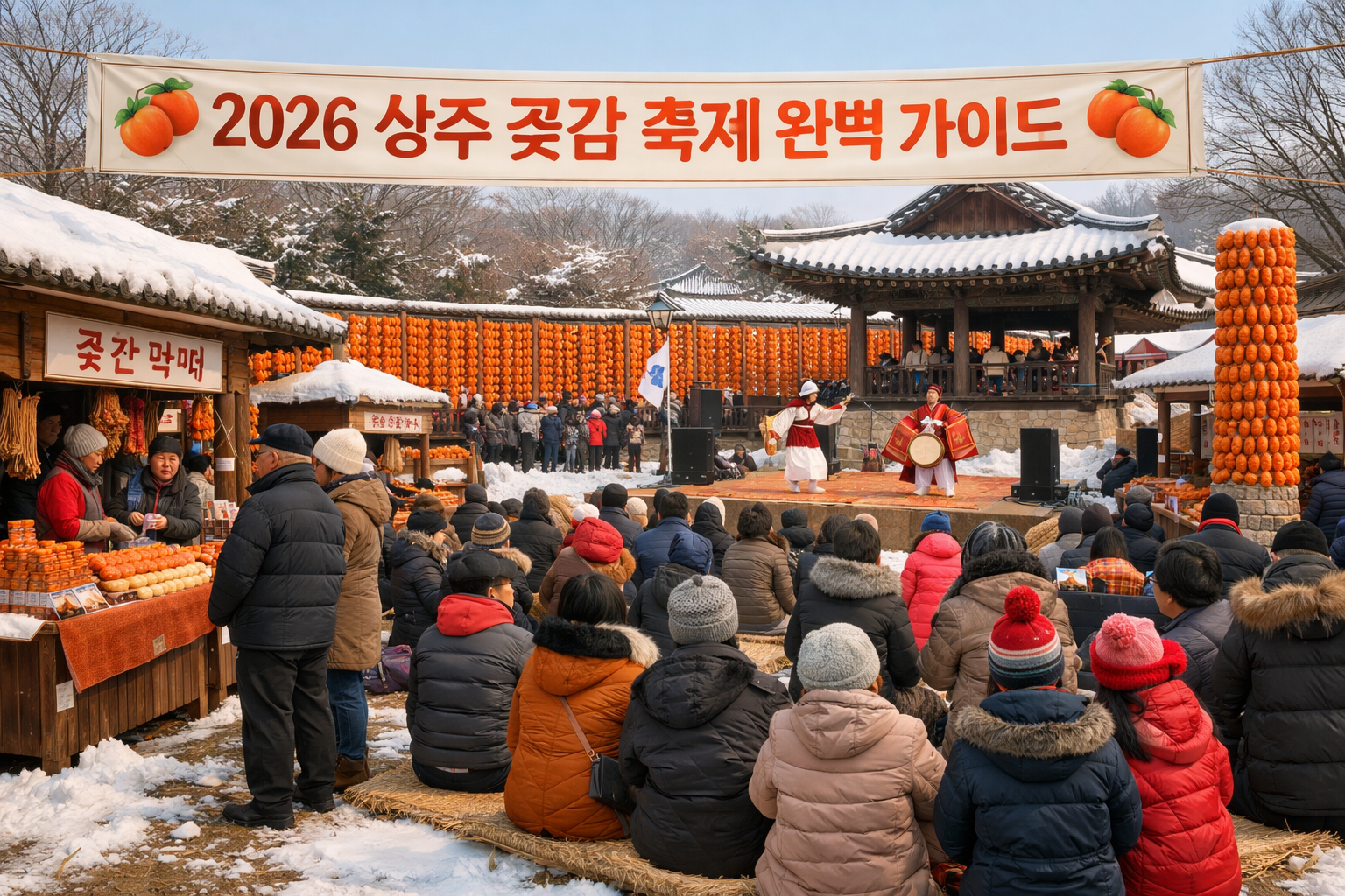 2026년 상주 곶감축제가 1월 23일부터 시작됩니다! 매년 100만 명이 찾는 대한민국 최대 곶감축제지만, 숙소와 주차는 금세 매진되고 맛집은 대기시간 2시간이 기본입니다. 미리 준비하지 않으면 발만 동동 구르게 되니, 지금 바로 완벽한 여행 계획을 세워보세요.