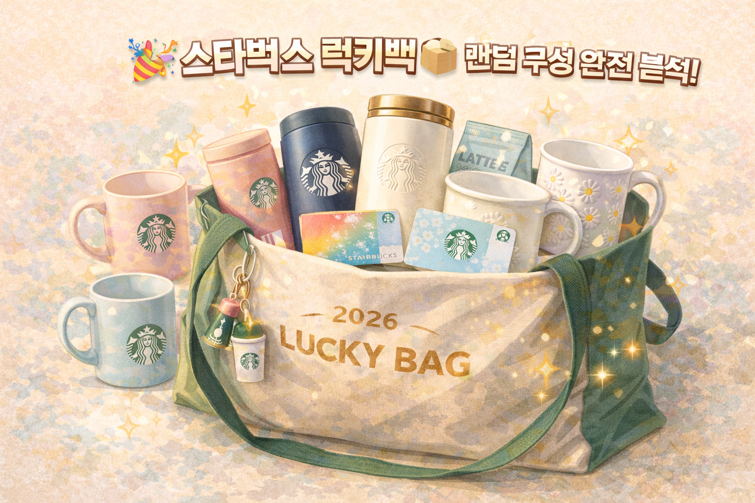 2026년 스타벅스 럭키백, 놓치면 1년을 기다려야 합니다! 매년 완판 대란을 일으키는 스타벅스 럭키백은 최대 50% 이상의 혜택을 제공하지만, 판매 시작 1시간 만에 품절되는 경우가 많습니다. 지금 바로 구매 전략부터 실제 구성품, 솔직한 후기까지 완벽 분석해드립니다.