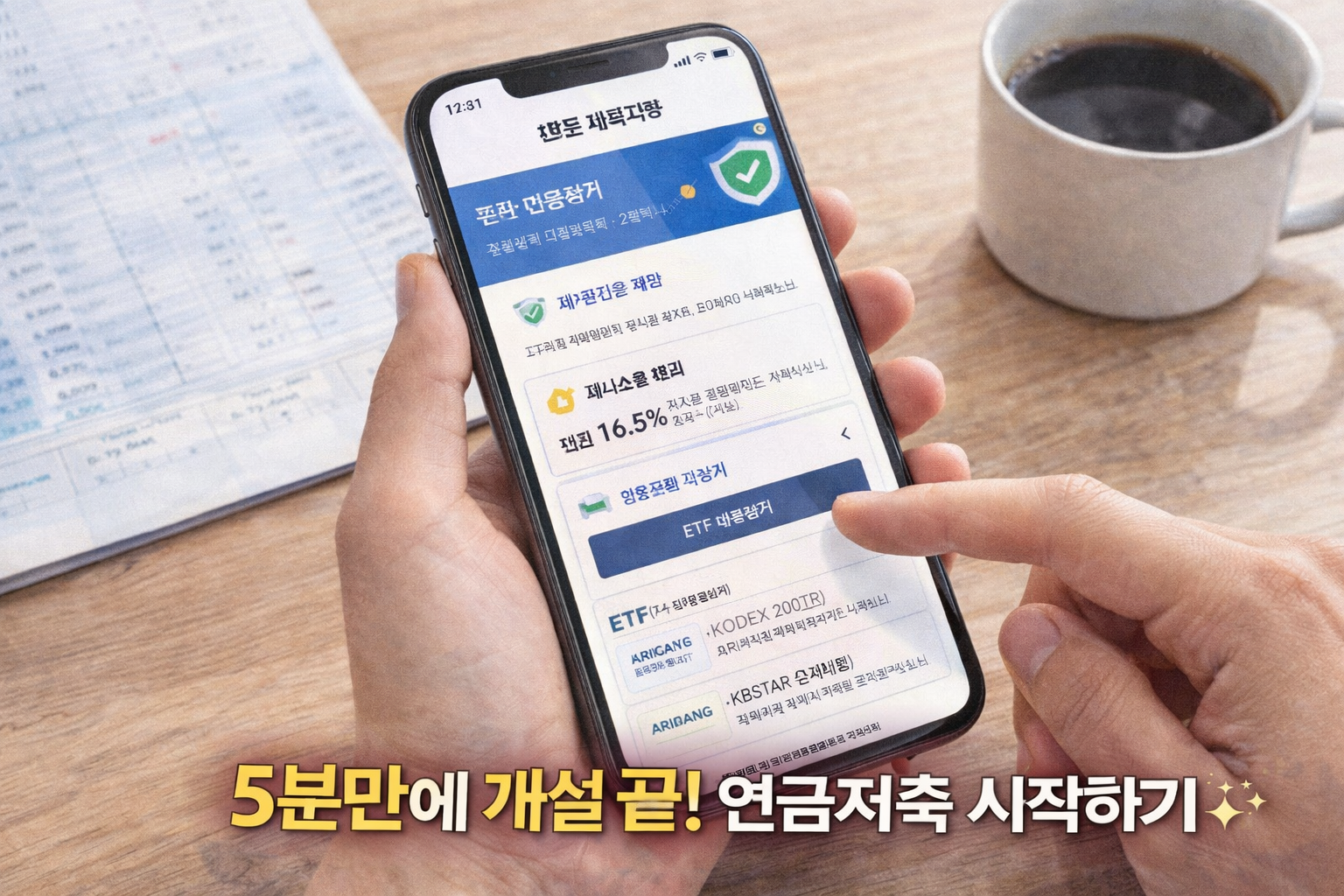신분증(주민등록증 또는 운전면허증), 입출금 통장, 스마트폰만 있으면 준비 완료입니다. 각 증권사 모바일 앱 또는 홈페이지 접속 후 '연금저축계좌 개설' 메뉴를 선택하세요.