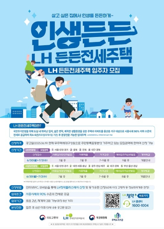 지금 이 순간에도 전세와 내 집 마련 사이에서 고민 중인 분들이 계시죠? LH가 1,713호에 달하는 ‘든든전세주택’과 ‘신혼·신생아 매입임대주택’ 청약을 시작했습니다. 이번 기회, 놓치면 정말 아깝습니다.